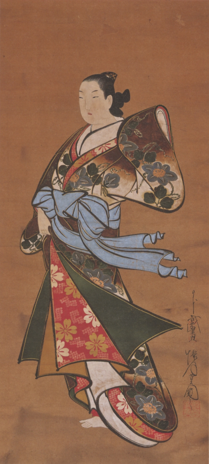 「江戸城本丸大奥総地図」! 私は、こういうのに目がなくてねぇ [^,^]。いくらでも想像/妄想を膨らませることができるのだ。(変な意味に取るの禁止。[;^.^])懐月堂安度の「風前美人図」は、大奥(の人物)を描いた作品ではない。安度が、大奥史上最大のスキャンダル(絵島生島事件)に連座して流罪となったことを「紹介」するために、展示されている。
