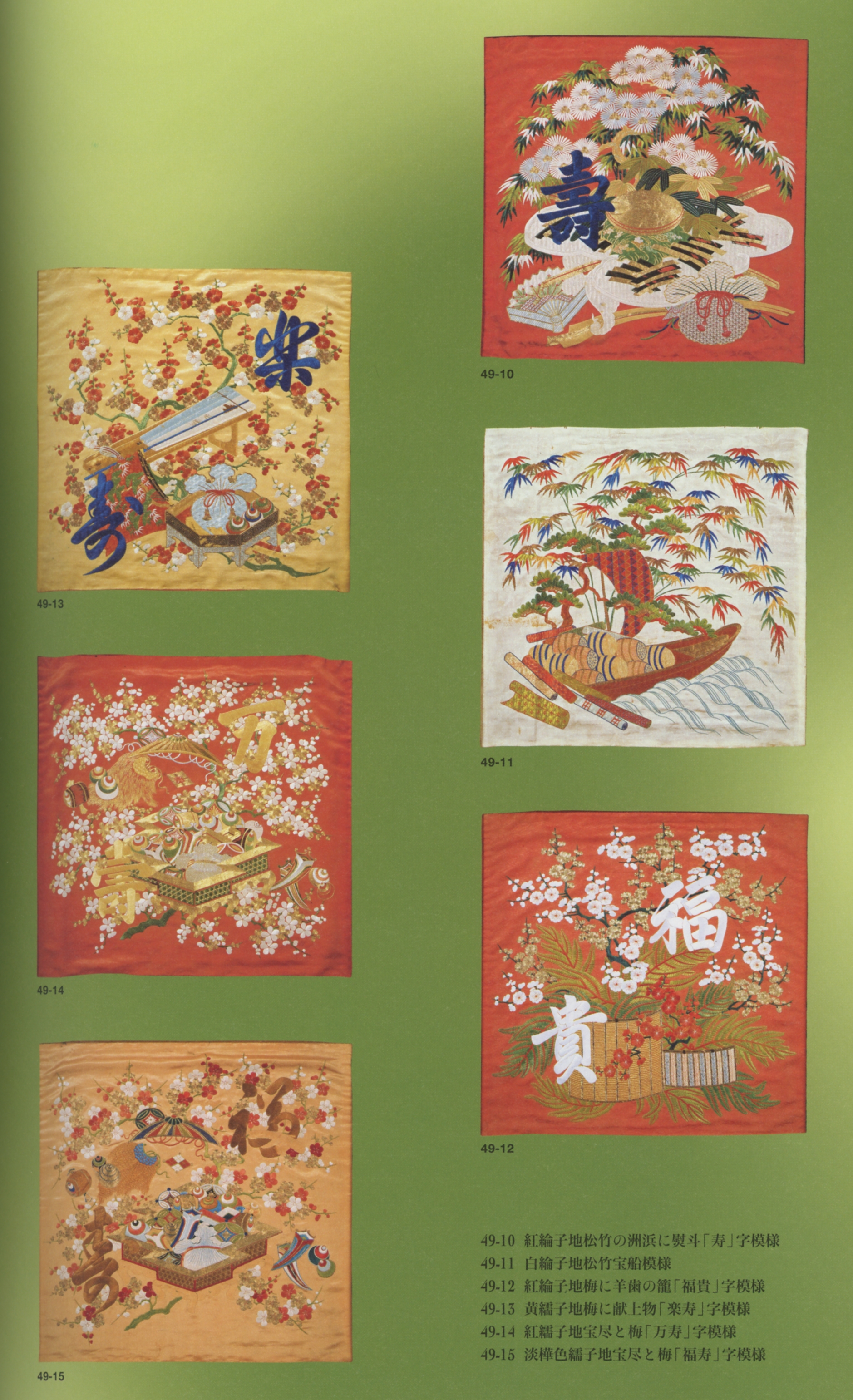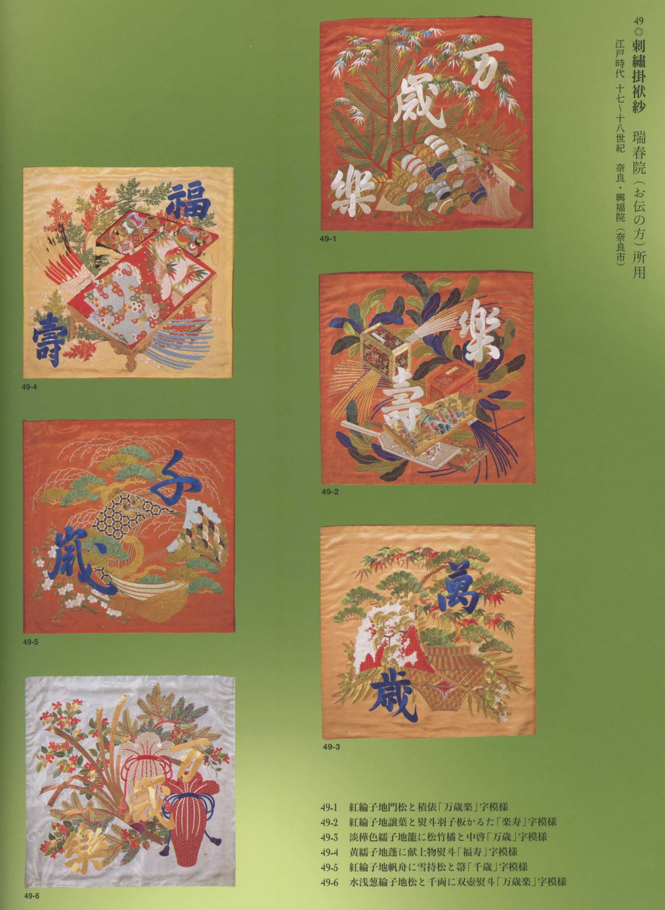 本展、当初はあまり興味を惹かれず、従って前期は見送って、後期(のしかも終わり際)になって観に来たのであるが、左2点、瑞春院(お伝の方)所用の「刺繍掛袱紗(抄)」を観て、今さらながら後悔してしまった [;_ _]。サンプルとして12点だけご紹介するが、全31点が、前後期にわけて半分ずつ展示されていたのである。つまり、半分しか観られなかったのだ。残念なことをした [;_ _]。これはもう本当に素晴らしい! 図録に掲載されている写真は実物の真価を僅かしか捉えきれておらず、ましてやそこからスキャンしたjpegファイルではどうにもならんのだが、これ以上のことができるわけでもなく。[;_ _]