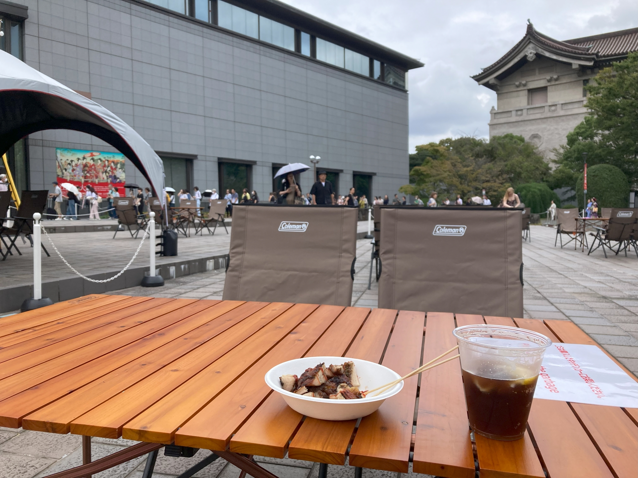 非常に珍しいことに、平成館の前の広場で、ビヤガーデンが開催されている。せっかくなので、ここで昼食とする。ジャークチキン、ラムコーク、マンゴービアカクテル。ほとんど涼しいとさえいえる、快適な気候。[^.^]