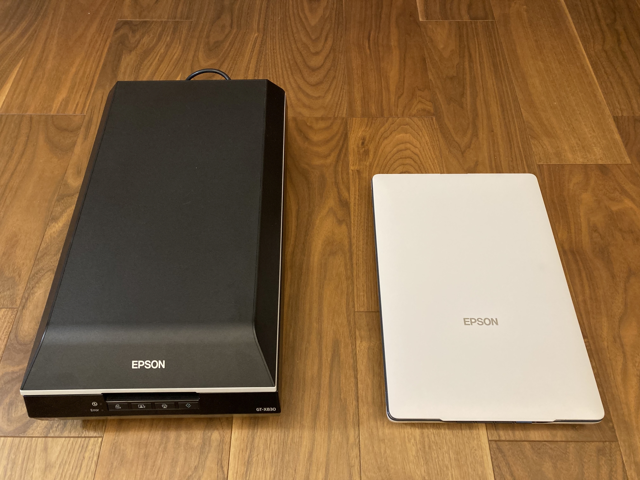 現在、2台のスキャナーを使っている。EPSONのGT−X830(写真左)と、同じくEPSONのS−650(写真右)(ともに販売終了品)。いずれも普段は作業机の横の棚に閉まっておいて、必要となる都度、引っ張りだしてノートPCにつないで使うスタイル。GT−X830の方が、古く、大きく(重く)、スキャン速度が速く、高画質。S−650の方が、新しく、薄く(軽く)、スキャン速度が遅く、相対的には低画質。遅く低画質とはいえ普通の用途にはS−650で全く問題はなく、USB電源で稼働するところもポイント高い。「画質」が問題というのは、解像度というよりは「被写界深度の浅さ」の問題である。スキャン書類(あるいは書籍)がガラスと距離ゼロで密着すればいいのだが、僅かでも「浮く」と、ピンぼけする。この状況は、A4よりも大きなサイズの書籍から(ページいっぱいのサイズの写真等を)スキャンするときに(周縁部で)発生する。それやこれやで、画集からスキャンするときは(多少手間でも)GT−X830、それ以外のスキャンのときはS−650、と使い分けている。