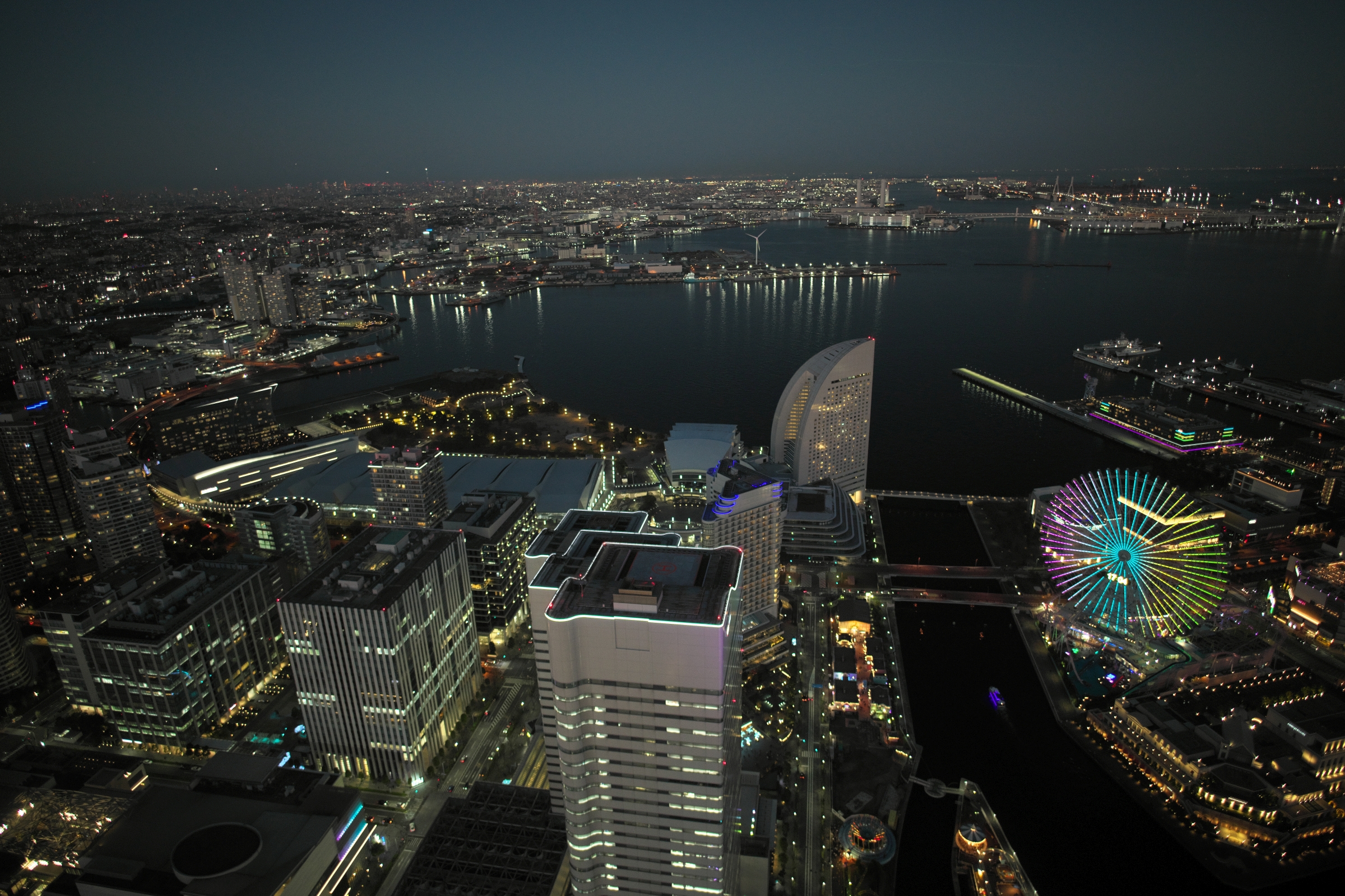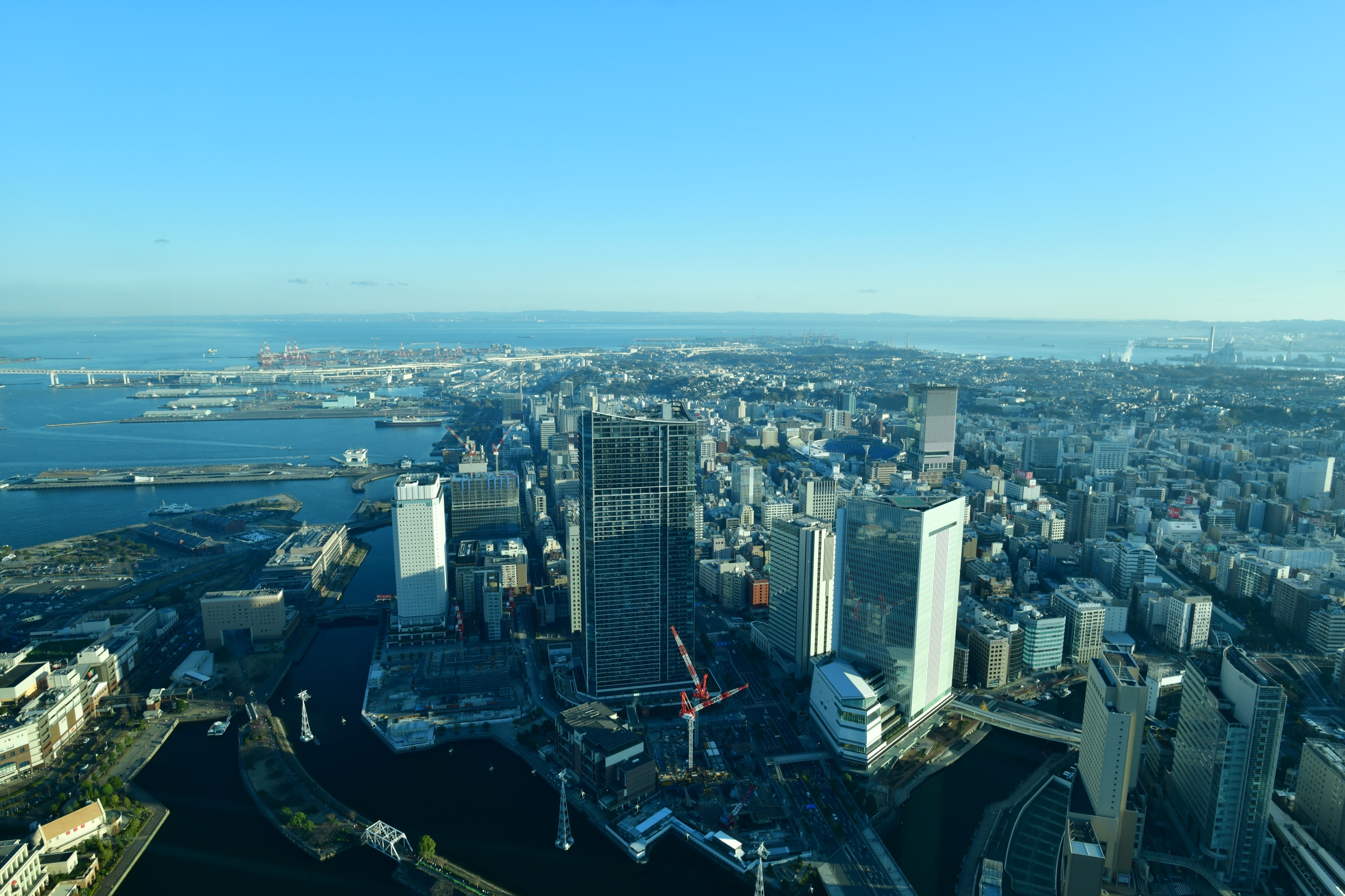 カメラとレンズを背負って、14:03のバスで発つ。あまり寒くない。14:55、横浜ランドマークタワーの69階展望フロア スカイガーデン。この年末で、ビル大規模修繕工事に伴って一時営業休止となるため、12月8日に夜景の撮影に来たのだが、満足の行く出来ではなかったので [;_ _]、リベンジしに来たというわけ。