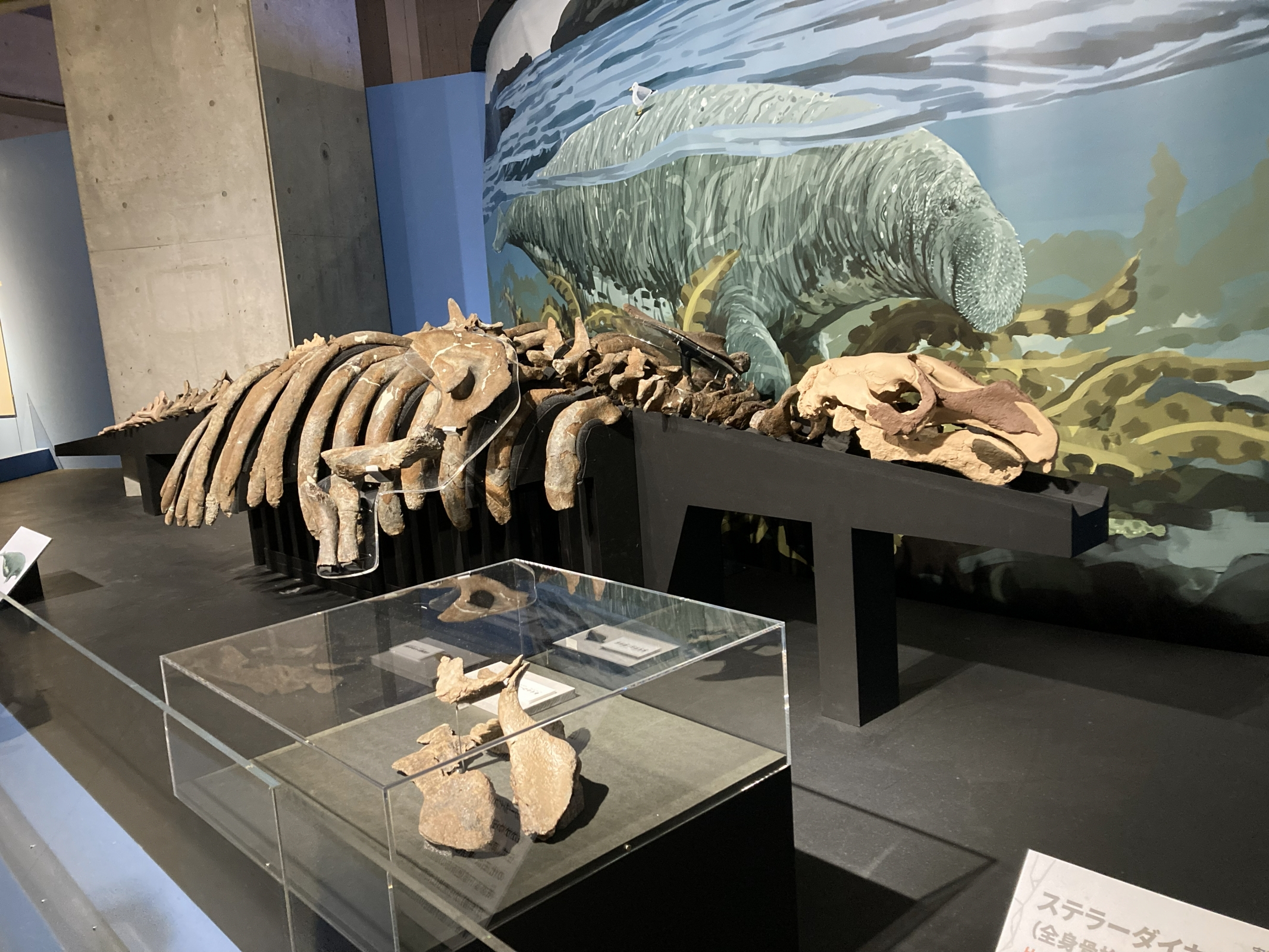 右端写真は、ステラーダイカイギュウの全身骨格の実物(一部レプリカ)で、「現生種」であるにもかかわらず全身骨格がほとんど残されていないという。私がこの標本に(やや)執着しているのは、東京都狛江市の多摩川左岸から産出した全身骨格であって、私が55年前まで住んでいたあたりのご近所さんだからである。[^.^]