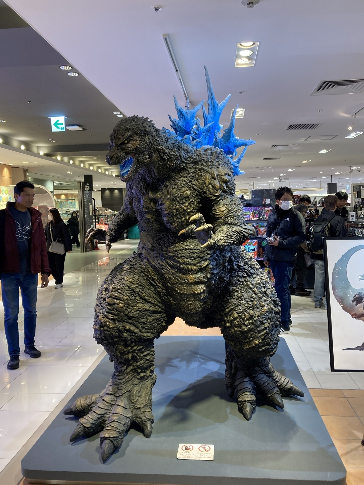 まず、買い物。某店の某嬢へのお土産として、大阪限定の入浴剤を探す。17:00、大丸の万博土産コーナーで入手できた。このフロアには、ゴジラ・ストアもありました。
