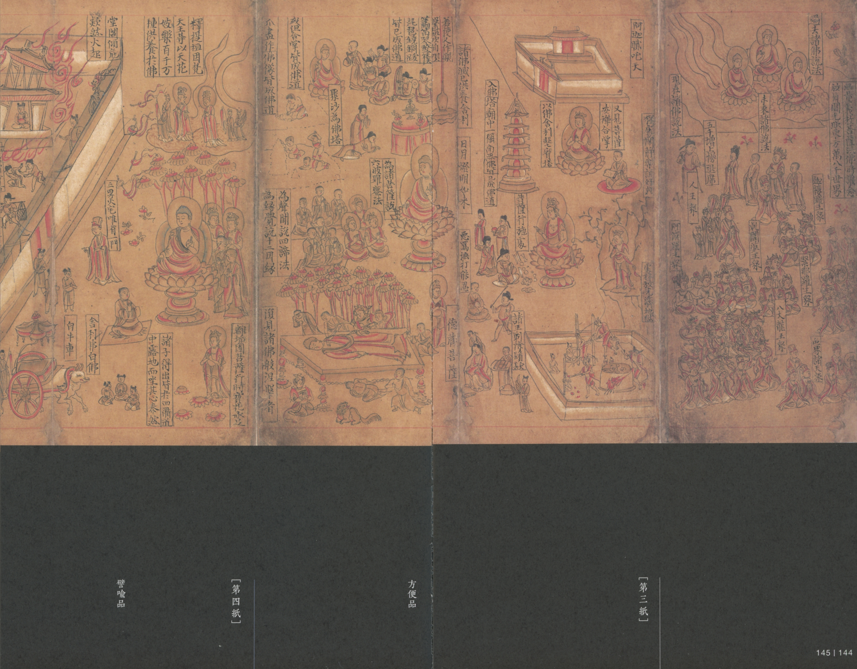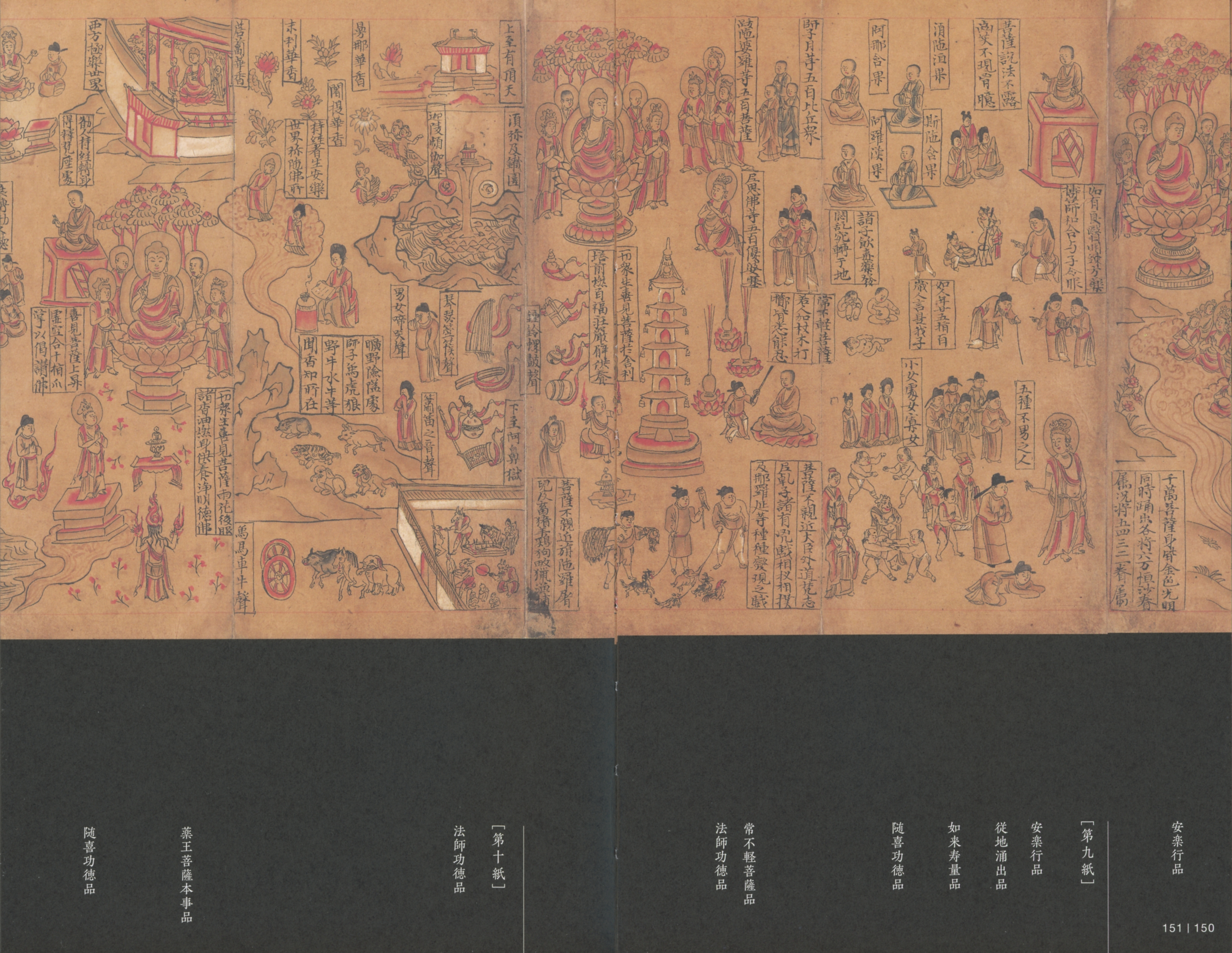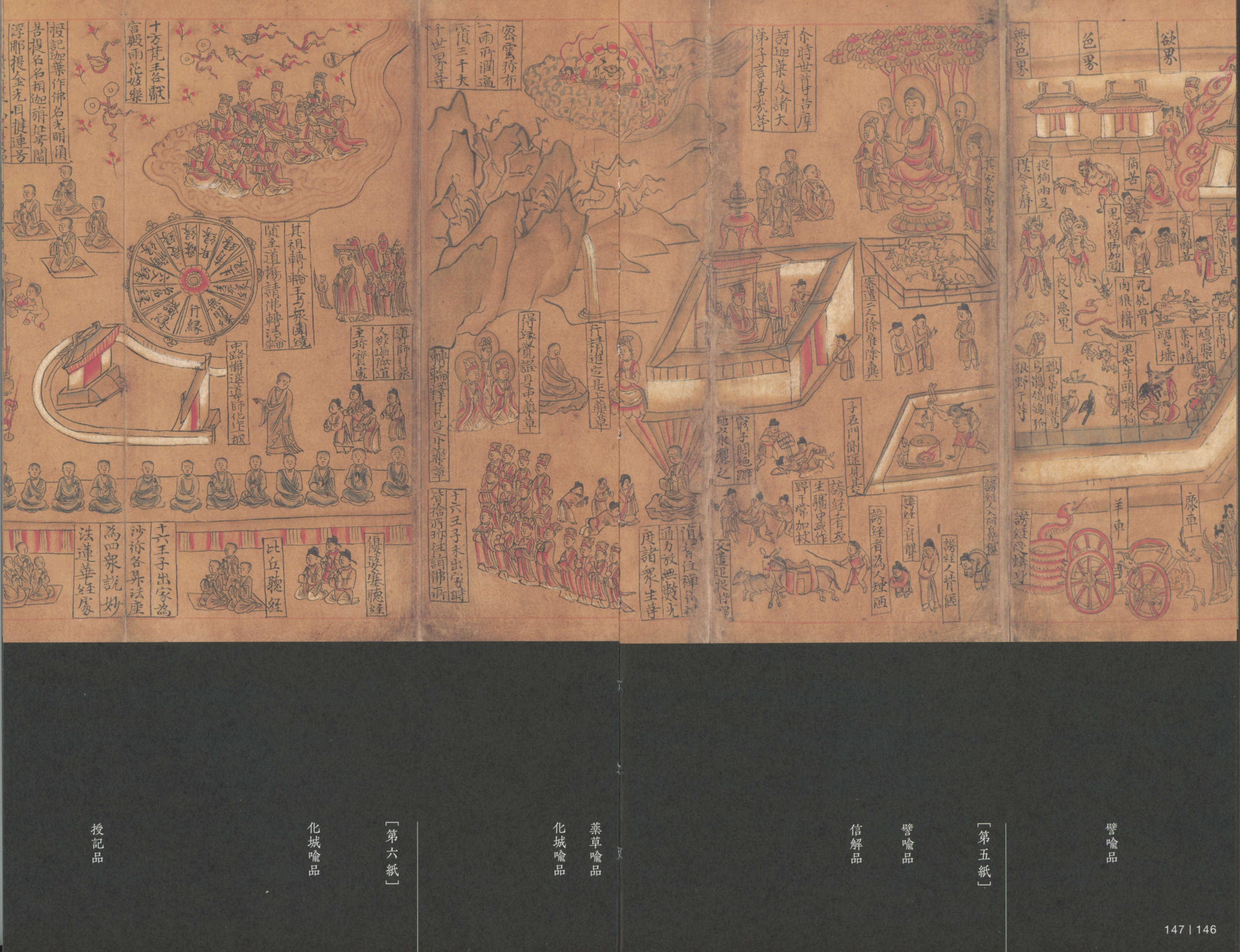 「妙法蓮華経変相図」−法華経の「諸品(しょほん=全28品(章)からなる『妙法蓮華経』の各章のこと)」を絵画化した変相図(Wikipedia)。(右から左へ観てください。)