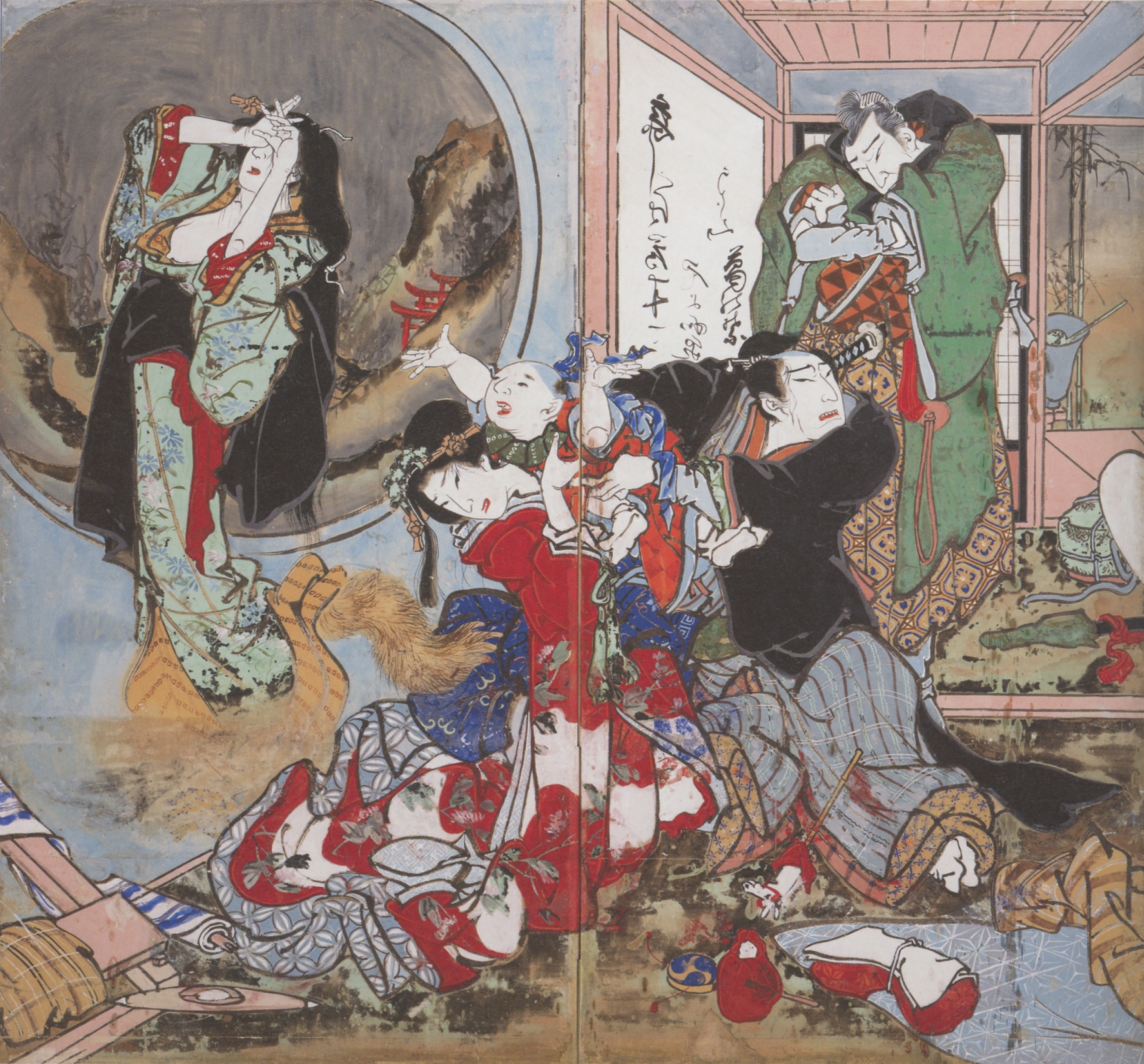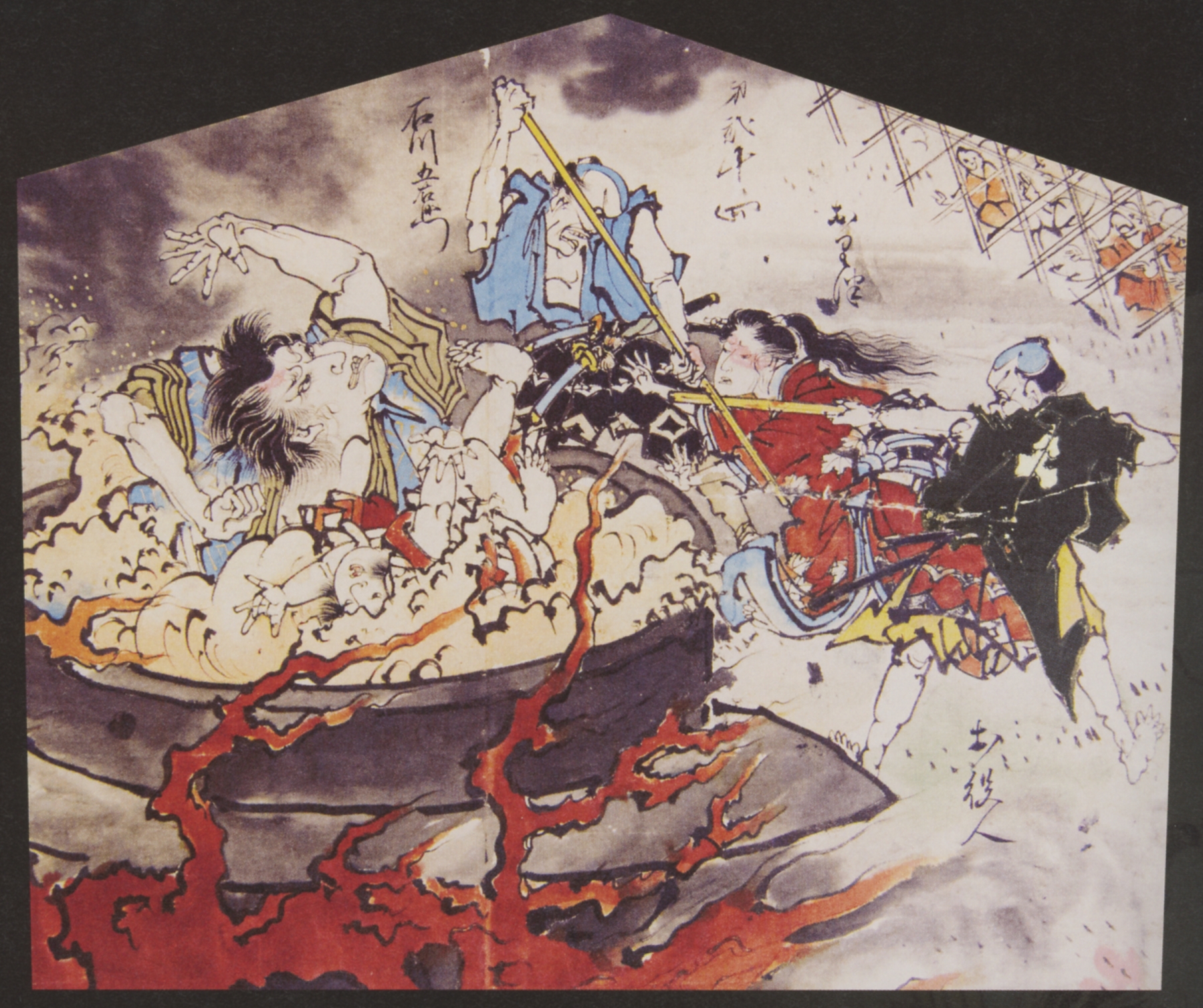 芝居絵のジャンルで活躍した土佐の絵描きである。「絵金」というのは「絵師・金蔵」の略なのであるが、「金蔵」以前にも、同時代にも、「絵金」というニックネームで呼ばれる絵描きはいたらしく、しまいには「芝居絵屏風」自体も、さらには「絵描き」の総称も、「絵金」と呼ばれるようになったとのこと。